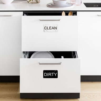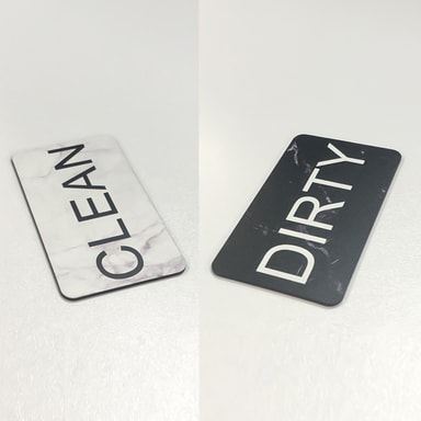 Vändbar och stilren design: Ena sidan visar en ""Clean""-etikett och den andra sidan visar en ""Dirty""-etikett. Med en enkel vändning kan du markera om disken i diskmaskinen är ren eller smutsig. Den moderna, stilrena designen gör att dismaskinsskylten passar in i varje kök.
