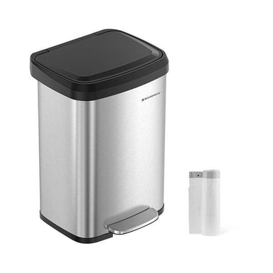 Locket öppnas enkelt med den 19,7 cm breda fotpedalen i stål, vilket ger hygienisk användning utan att behöva använda händerna. Den mjukstängande mekanismen gör att locket sluts långsamt och ljudlöst, och kan även lämnas öppet när du behöver slänga mycket på en gång.