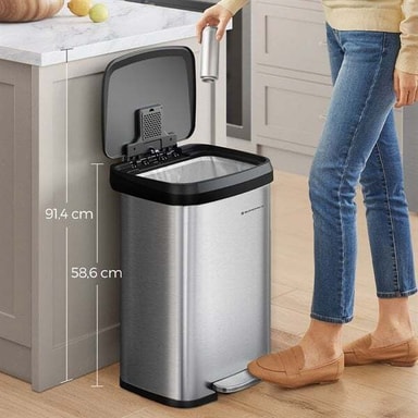 Förenkla vardagen i köket med denna stilrena pedalhink från Songmics i silver och svart. Med hela 50 liters volym rymmer den stora mängder hushållsavfall, vilket gör den idealisk för familjer eller hem där mycket matlagning sker. Den rektangulära formen med rundade hörn gör att hinken både är platsbesparande och visuellt tilltalande.