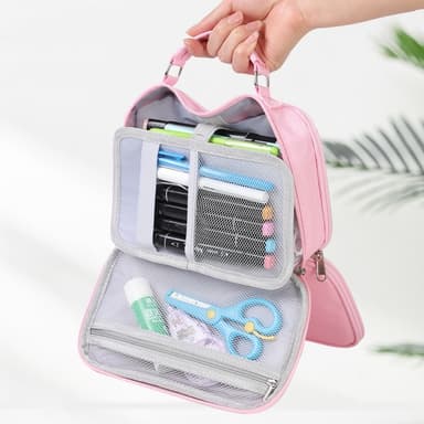 Flerfacksdesign: Detta pennfodral har en praktisk flerfacksdesign som möjliggör effektiv organisering. De uppdelade sektionerna håller dina skrivredskap prydligt separerade och förhindrar att de rullar runt eller skadas. Hitta enkelt det du behöver utan att rota igenom en rörig väska.