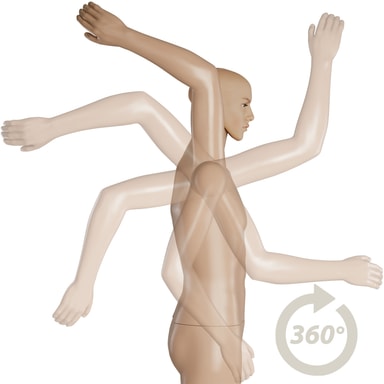 Realistiska proportioner, en naturlig hållning samt fin ansiktsteckning – dessa egenskaper utmärker skyltdockorna från tectake. Med sitt vrid- och böjbara huvud och rörliga armar går figuren att placera i många olika positioner. Dockans tilltalande och moderna design harmoniserar med olika moderiktningar och accessoarer. Glasskivan med aluminiumstöd mot vaden ger god stabilitet och gör det möjligt för dockan att bära skor. Till ett skyltfönster, som blickfång på en fest eller som en annorlunda klädhängare: Den robusta skyltdockan från tectake visar alltid upp en snygg figur.