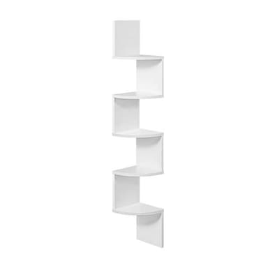 Vägghängd hörnbokhylla med 5 hyllplan - Vit
