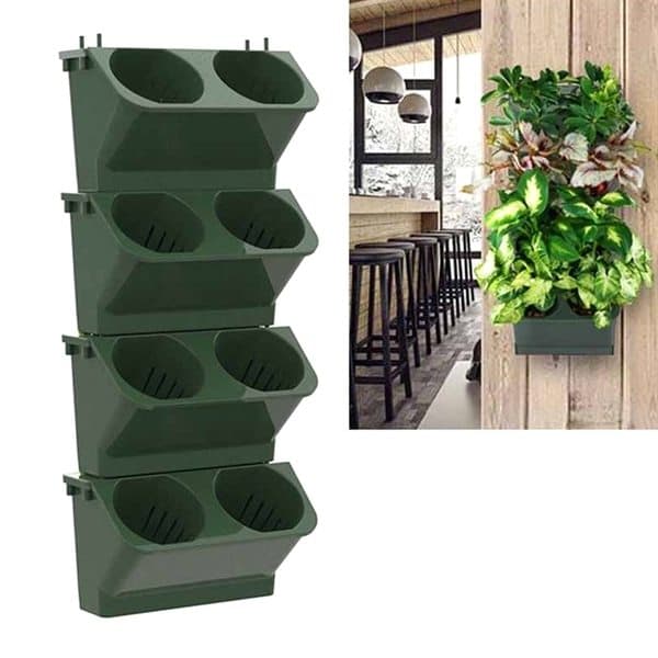 Växtodlingsystem för väggen - med plats för 8 växter Växtvägg för balkongen, terassen eller inomhus. Perfekt för balkongen eller den lilla trädgården när man har liten yta att odla på. 8 odlingskrukor i 4 rader. 4 Moduler med 2 oldignsplatser i varje. Mått: 24 x 14 x 57 cm Vikt: 1500gram