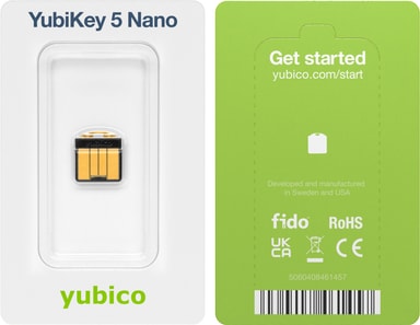 YubiKey 5 Nano säkerhetsnyckel erbjuder robust säkerhet med USB-A-anslutning, kompakt design, FIDO-certifiering och phishing-säker tvåfaktorsautentisering för att skydda konton på macOS, Windows och andra system.Läs mer om produkten