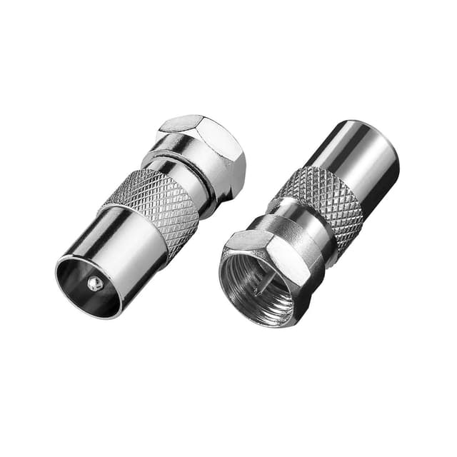 Högklassiga antennkontakter som används för att omvandla en vanlig antennkontakt till en F-kontakt. Säljs i 2-pack med både Hane till F-kontakt och Hona till F-kontakt.