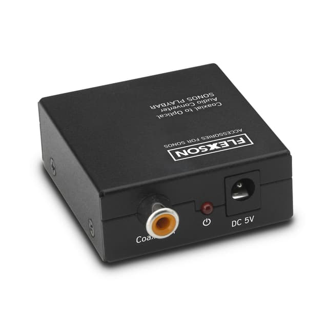 Omvandlare digital rca -optisk för sonos playbar. Konverterar koaxial utgång till optisk in. Enkel installation. Kompakt design, lätt att placera doltansluter tv-apparater med en koaxial utgång till sonos playbar eller sonos playbase. Metallhölje och guldpläterade kontakter. Nätaggregat ingår. Ljudkablar ingår inte.