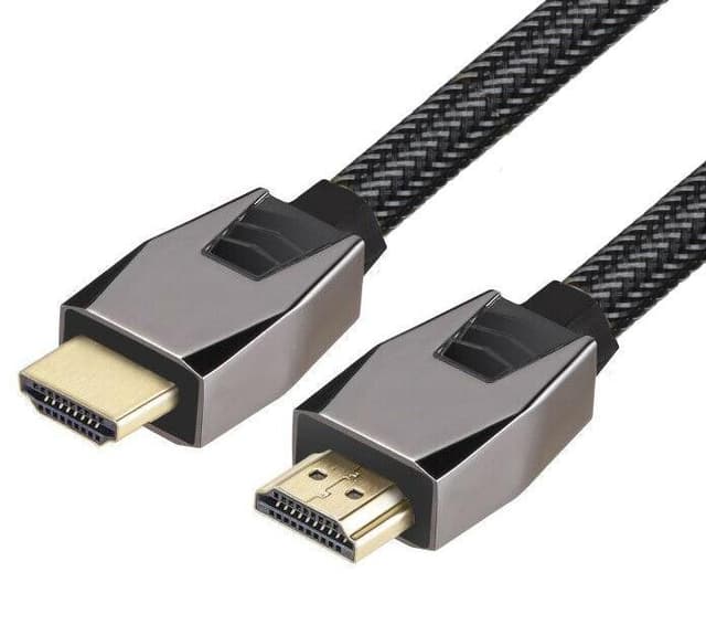 En högkvalitativ HDMI-kabel i hållbar nylonflätad design och med 24K guldpläterade kontakter för bättre ljud- och bildkvalitet och stabil signalöverföring.