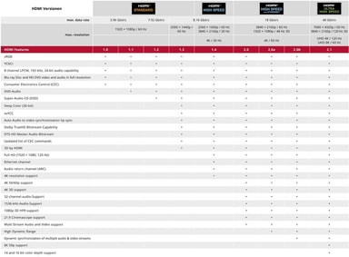 andra standarder som stöds : HDR (High Dynamic Range), HDMI™ Ethernet Channel (HEC), 3D, HDCP 2.2, Consumer Electronics Control (CEC), Audio Return Channel (ARC)