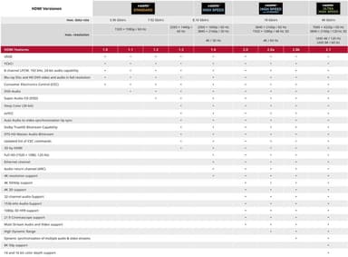andra standarder som stöds : HDR (High Dynamic Range), HDMI™ Ethernet Channel (HEC), 3D, HDCP 2.2, Consumer Electronics Control (CEC)