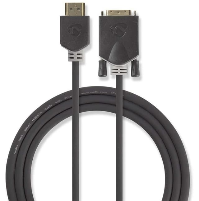 • Nedis HDMIâ„¢ kabel | HDMIâ„¢ Kontakt | DVI-D 24+1-Pin Hane | 1080p | Guldplaterad | 2.00 m | Rak | PVC | Antracit | Window Box med Euro Lock