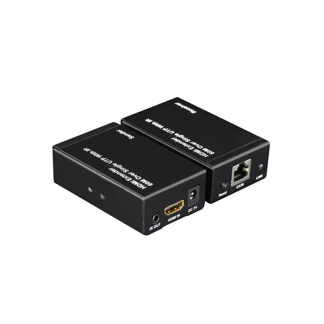 Med NÖRDIC SGM-124 HDMI Förlängare kan du utöka HDMI ljud / videosignal med upp till 60 meter över en enda CAT6-kabel. SGM-124 innehåller både den lokala sändaren och fjärrmottagarenheterna, perfekta för punkt-till-punkt digitala skyltapplikationer som kräver HDMI video av hög kvalitet. Det fungerar också för att utöka IR-signaler från fjärrkontroller, idealiskt för att styra din videokälla från din videodestination. För perfekt prestanda har förlängaren en återställningsfunktion (reset) på mottagaren, vilket gör det möjligt för användaren att justera signalen så att den bäst matchar kabellängden. SGM-124 drivs av ett par medföljande DC5V nätadapter.