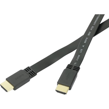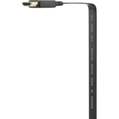 Med denna platta kabel är det inget problem mer att dra kablar. Bakom skrivbord, skåp eller TV-väggar - den här kabeln kan du dölja utmärkt på många ställen. För överföring av video med hög upplösning och digital flerkanalsljud med en enda kabel. Den svarta kabeln har en fantastiskt liten böjradie och är knappt tjockare än 1,3 mm.