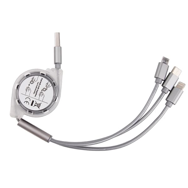 Trasselfri Usbkabel 3i1 - MicroUSB, USB Type-C & Lightning. Trasselfri sladd, sk Rullgardin funktion, vilket betyder att sladden förvaras i en vinda, och dras ut till önskad längd vid behov. - USB-kabel med laddningsfunktion Passar alla enheter med 8 Stift / USB 3.1-C / Micro USB Laddport Samsung / Sony / Htc / iPhone m.m Mobiltelefon datakabel