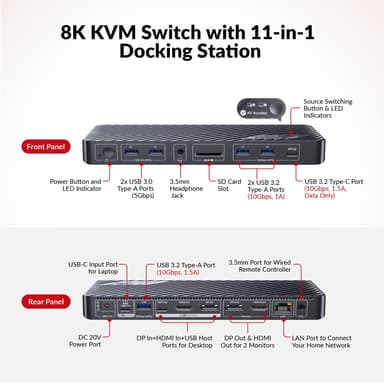 Denna allt-i-ett AV Access iDock B10 KVM-dockningsstation låter dig smidigt växla mellan en laptop och en stationär dator med bara ett knapptryck, samtidigt som du utnyttjar dual-monitor setup, snabbladdning och omfattande anslutningsmöjligheter. Perfekt för både produktivt arbete och gaming.