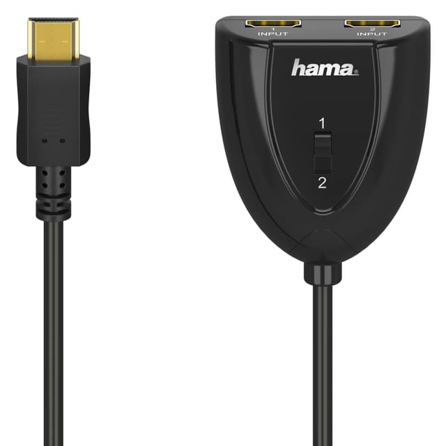 Hama 2x1 HDMI switcher ger dig möjlighet att manuellt byta mellan högupplösta video och ljudsignaler på AV-enheter (HDTV). Switchen stödjer upplösningar mellan 480i till 1080p (upp till 60 Hz) och guldpläterade kontakter ger dig bra signalöverföring