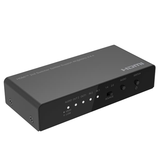 Med NÖRDIC SGM-122 Switch splitter kan du koppla två HDMI källor till två monitorer, TV eller projektor och switcha mellan HDMI källor. Det innebär att switchen visar bild från en HDMI käll i två monitorer samtidigt. SGM-122 klara upplösning upp till 4K i 60Hz och är bakåt kompatibel med 1080p, 720p, 576p och 480p.