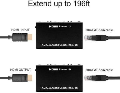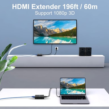 FunktionerFörlänger HDMI-signal upp till 60 meter via en Cat5e- eller Cat6-kabel