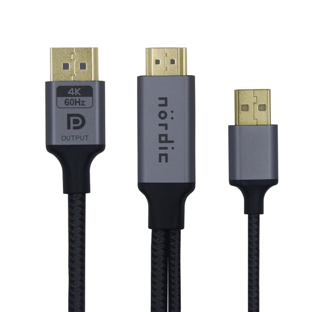 NÖRDIC HDMI till Displayport kabel låter dig ansluta en HDMI källa till en Displayport monitor, TV, projektor eller dylikt. Kabeln har stöd för upplösningar upp till 4k60Hz och HDCP 2.3. Kabeln har också stöd för 8 kanalers, 24 bitars 192Khz ljud. Notera att kabeln kräver strömförsörjning via USB-A och bara fungerar från HDMI till Displayport.