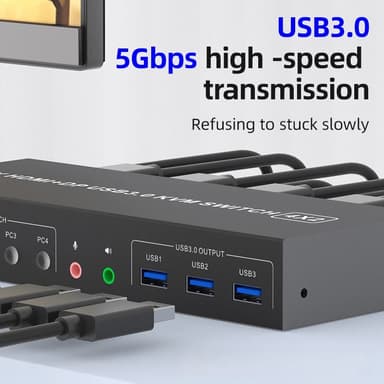 Denna produkt låter dig ansluta upp till fyra datorer och dela på två skärmar samt tre USB-enheter som tangentbord, mus eller skrivare.Läs mer om produkten