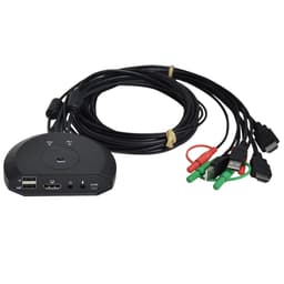 NÖRDIC KVM-145 låter dig ansluta två datorer till en extern skärm och enkelt byta mellan vilken källa som visas. Anslut kablar på baksidan av KVM-switchen till dina två DP källor och en Displayport kabel till din monitor. Switchen stöder DP 1.2 och är bakåtkompatibel med tidigare versioner (DP kabel till monitor medföljer ej) och stöder även HDCP upp till version 2.2. Det finns två USB-A 2.0 portar för ditt tangentbord och mus samt två 3.5mm portar för mikrofon och hörlurar. Stöder upplösningar upp till 4K60Hz 4:2:0, 4K30Hz 4:4:4 eller 1440p144Hz. Stöder en maximal bandbredd upp till 15.6 Gbps data rate på 6.0 Gbps och HBR1. Switchen stöder färgformat RGB, 4:4:4, 4:2:0 och upp till 10bpc färgdjup. Switchen drivs av medföljande 5V micro-USB nätkabel. Inga drivrutiner krävs, plug and play.Specifikationer