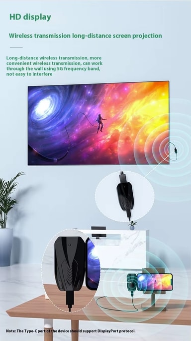 Nördic Trådlös USB-C till HDMI-förlängare 150 m gör det möjligt att trådlöst överföra video och ljud i Full HD från datorer och mobila enheter till TV, skärm eller projektor. Den använder 5 GHz trådlös teknik för stabil och snabb signalöverföring med låg störningsrisk. Perfekt för presentationer, hemmabio och mötesrum där kabeldragning är opraktisk. USB-C-porten stöder DisplayPort-protokoll och kan samtidigt ge laddning under användning.