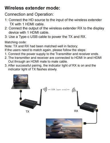 Trådlös HDMI-förlängning: Skickar HDMI-signal upp till 150 m utan kablar