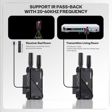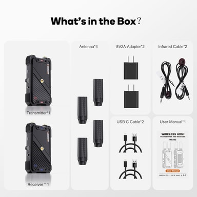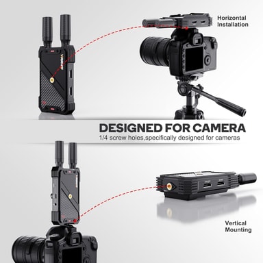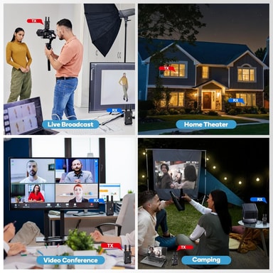 Denna produkt är en trådlös portabel HDMI-sändare och mottagare som ger stabil videotransmission på upp till 400 meter. Med stöd för 4K HDMI-ingång och 1080p-utgång, ultralåg latens och bred kompatibilitet är den idealisk för både hemmabruk, presentationer och utomhusevenemang.