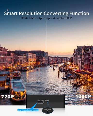 Omvandla RCA till HDMI: Med hjälp av adaptern kan du enkelt ansluta en HD-skärm till äldre konsoler, VHS-spelare och liknande. Signalomvandlaren konverterar analoga RCA-signaler (komposit) till digitalt HDMI. Den överför bilden med en upplösning på upp till 1080P så du kan njuta av spel eller video i HD-kvalitet.