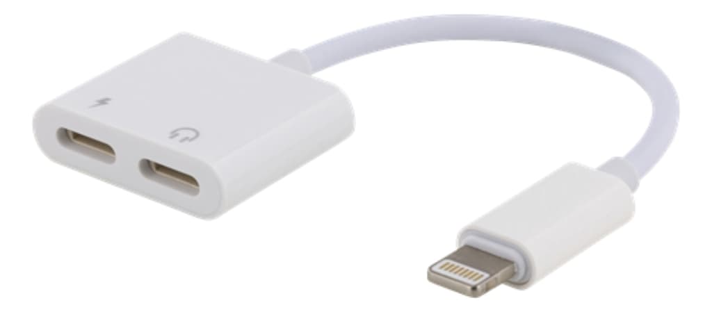 Ladda och lyssna musik samtidigt till din iPhone med denna smarta adapter. Kontakter är lightning till dubbla lightning. Kabellängd 0,1 m.