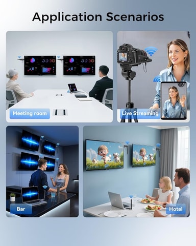 Denna trådlösa HDMI-sändare/mottagare (1 till 2) är en kraftfull lösning för att trådlöst projicera bild och ljud från datorer, laptops och Mac-enheter till större skärmar som TV, bildskärm eller projektor. Produkten är utvecklad för smidig storskärmsvisning, spelcasting, livestreaming, konferenser och skärmdelning. Med kompakt design, stabil signal och äkta plug-and-play får du en pålitlig och kabelfri HDMI-förlängare utan krångliga inställningar.