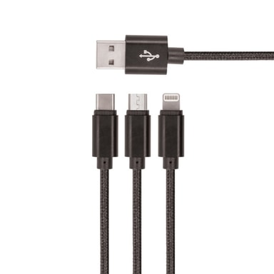 Setty 3i1 USB-kabel till microUSB/USB-C/Lightning, 1,2 m, Svart