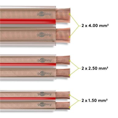 Högtalarkabel med högkvalitativ tråd (CCA: copper-clad aluminium) för goda överföringsegenskaper, t.ex. mellan Hi-fi-system och högtalare