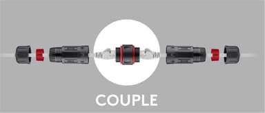 Kabelanslutning för utomhus- och industriella tillämpningar med skydd mot smuts och fukt (skyddsklass IP68).