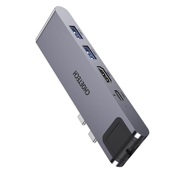 USB-C Hub för Apple Macbook Pro Denna Macbook Pro-adapter är en fantastisk uppgradering för nya MacBook Pro/Air som har begränsadat med portar. Den har 4K HDMI, 1000Mbps Ethernet, 100W Thunderbolt 3-port, 2 USB 3.0-portar och SD/Micro SD-kortplatser. En perfekt adapter att uoogradera funktionerna på din MacBook - Lätt att använda, plug and play. Kraftfull Thunderbolt 3 Hub: Med Thunderbolt 3-porten stöder MacBook Pro USB C-hub en kraftfull strömförbrukning på upp till 100W, vilket ger din bärbara dator en maximal kontinuerlig laddning på 87W vid anslutning av kringutrustning. Dataöverföring med en hastighet på upp till 40 Gb/s ultrahög datahastighet och 5K vid 60 Hz videoutgång. Kristallklar 4K HDMI-adapter: Spegla eller utöka skärmen på din MacBook Pro/Air till din TV, bildskärm eller projektor med en UHD-upplösning på upp till 4K@30Hz via HDMI-utgången. Dessutom stöder Thunderbolt 3-porten upp till två 4K @ 60Hz-skärmar eller en 5K @ 60Hz-skärm. USB 3.0-portar och micro SD/SD-kompatibla: 2 USB 3.0-portar överför data med upp till 5 Gbps och stöder USB-tangentbord, mus, USB-drivrutin, USB-hårddiskar, webbkameror, skannrar och lagringssystem med hög kapacitet. SD-kort och micro SD-kortläsare kan användas med en snabb överföringshastighet på upp till 104 m/s. Du kan enkelt överföra foton eller videor med din kamera från kort till MacBook Pro/Air inom några sekunder. Gigabit Ethernet-anslutning: Få en stabilare och ultrasnabba kabelanslutningshastighet på upp till 1 Gbps. Med USB-C till Ethernet-adaptern kan du hämta hela din internethastighet med den medföljande Ethernet-porten och inte längre tappa anslutningen under större möten. Den är även bakåtkompatibel med RJ45 LAN med 100Mbps/10Mbps RJ45 LAN