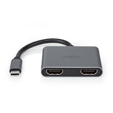 Nedis USB-C™ Adapter | 2-in-1 | USB 3.2 Gen 1 | USB-C™ Hane | 2x HDMI™ | 4K@30Hz | 0.10 m | Rund | Nickelplaterad | PVC | Svart | Låda