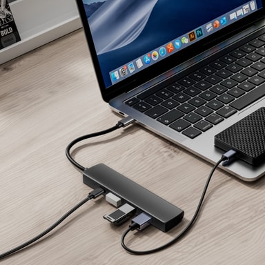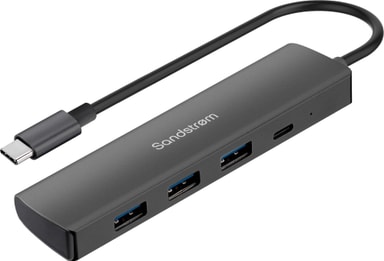 Sandstrøm USB-C 4-Port Power Delivery Hub förvandlar en enda USB-C till fyra portar för universell kompatibilitet, höghastighetsöverföring av data och laddning av enheter, vilket effektivt förbättrar anslutningen i din arbetsyta.Läs mer om produkten
