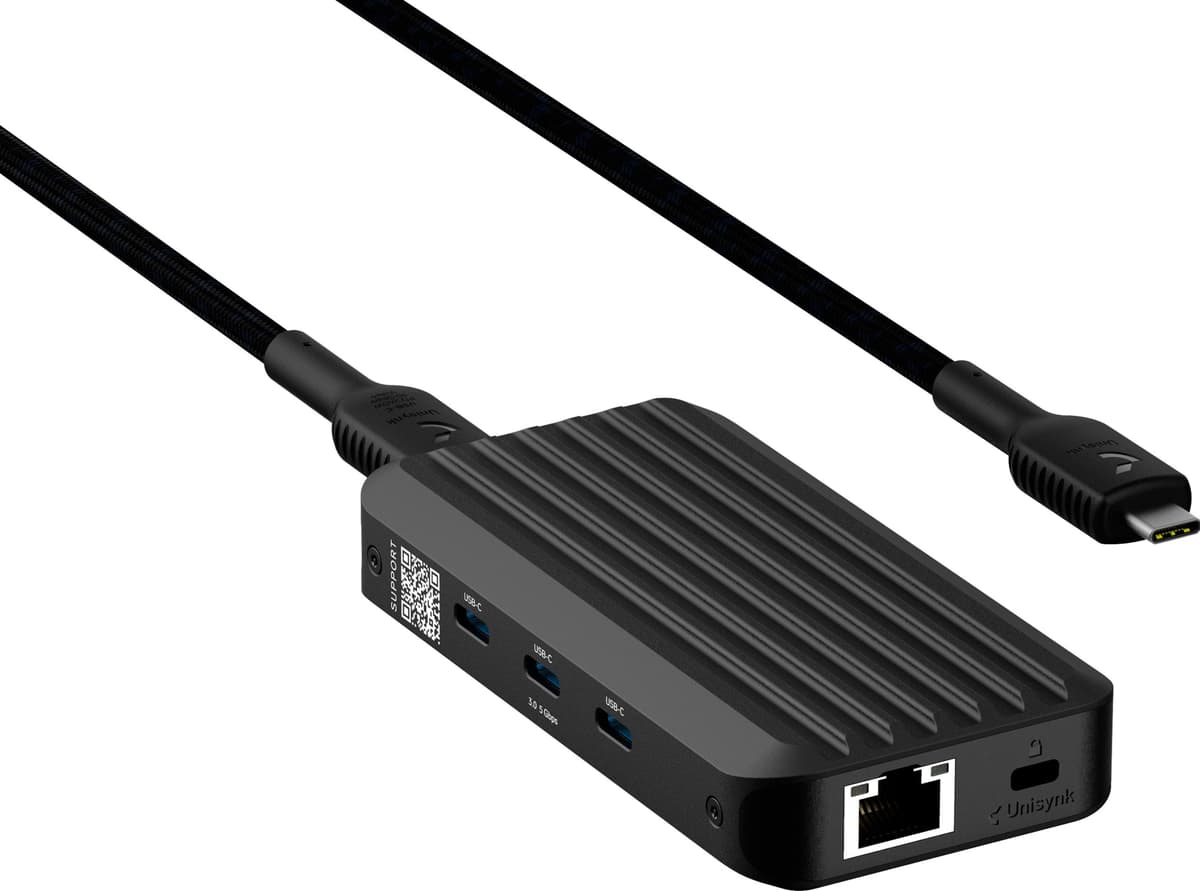 Unisync 8-portars USB-C-hubb låter dig utöka din installation och ansluta flera enheter och tillbehör. USB-C-hubben erbjuder 8 portar, 140 W USB-C-strömförsörjning och har en löstagbar USB-C-kabel.Läs mer om produkten