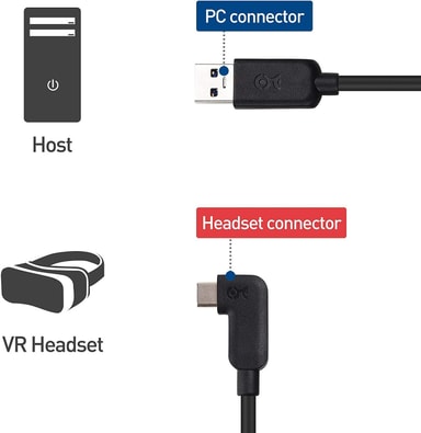 Högkvalitativ kabel med förstärkt specialdragavlastning och aluminiumhölje säkerställer en längre livslängd. Med en 90 graders vinklad design är det bekvämare och bekvämare att spela spel. Signalen är enkelriktad från PC till VR headset.