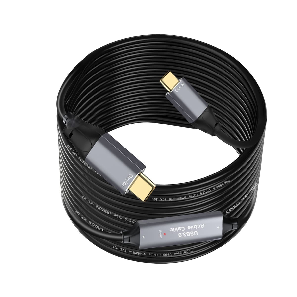NÖRDIC 10m Aktiv USB 3.0 C till C-kabel, 5Gbps Super Speed USB-kabel