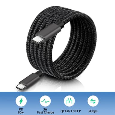 NÖRDIC högpresterande USB3.1 Gen1 USB C till USB C kabel med 5Gbps dataöverföringshastighet, 60W Power Delivery för snabb laddning av bärbar dator, surfplattor och mobiltelefoner.