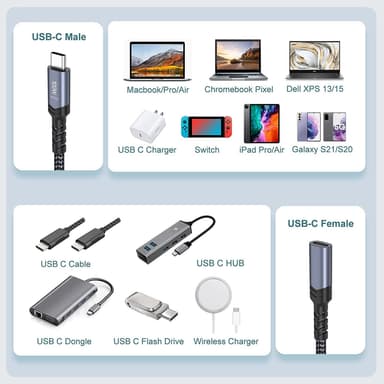 Kabeln innehåller ett E-marker chipset för att skydda dina enheter när du laddar dom.