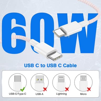 NÖRDIC 2m USB 2.0 USB-C till C kabel för iPhone 15/15 Pro/15 Plus/15 Pro Max 3A 480Mbps 60W vit