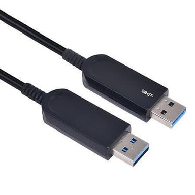 Aktiva optiska kablar kräver ingen extern strömkälla för att konvertera och överföra elektriska signaler som optiska signaler och erbjuder många fördelar jämfört med konventionella kopparanslutningar. De är mycket lättare och mer flexibla än koppar för applikationer med hög bandbredd, har ett längre överföringsavstånd och ingen känslighet för elektromagnetisk störning (EMI). Fiberkabeln har samma standard USB A kontakter och det innebär att du kan koppla den som en vanlig USB A kabel till din PC eller andra enheter. För att kunna klara vissa specifikationer är kablen en hybrid av OM3 Multimode 4 leadre fiber och 7 ledars kopparkabel.