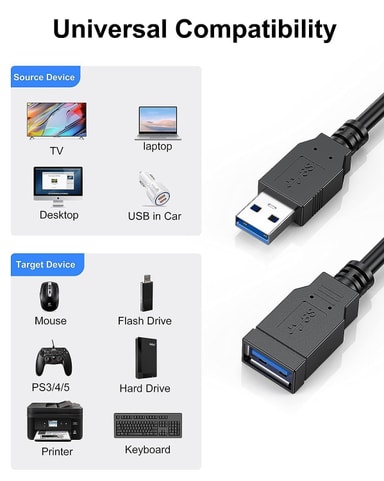 NÖRDIC USB 3.0 type A förlängningskabel 3m låter dig förlänga en USB-A signalkedja utan behov för extern strömförsörjning eller drivrutiner.Specifikationer: