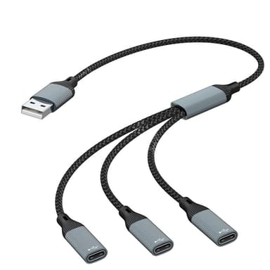 Denna produkt är en USB-splitter som omvandlar en USB-A-port till tre USB-C-portar. Perfekt när du behöver ansluta flera USB-C-enheter samtidigt till en dator, laddare eller annan USB-A-port. Enkel och smidig lösning för att utöka användningsmöjligheterna.