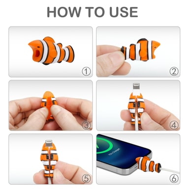 Tack vare den enkla hanteringen är det lätt att sätta fast skyddet. Tryck bara in den avlånga öppningen i botten på kabeln tills den är lindad.