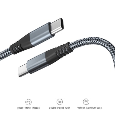 USB-C-laddare med snabbladdning på upp till 60 W. Laddningskabeln erbjuder en stabil och snabb laddningsprestanda och är en trasselfri nylonkabel. Laddkabeln ger större flexibilitet under laddning.
