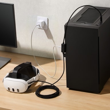 Håll ditt Quest 3- och Quest 3S-headset laddat och anslutet med ViMe VR data- och laddningskabel USB. Den stödjer snabbladdning upp till 18W och smidig höghastighetsöverföring av data med USB 3.2.Läs mer om produkten