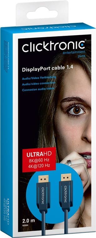 Clicktronic lägger stor vikt vid hållbarhet och stabilitet. Vårt kvalitetslöfte: 10 års garanti på våra DisplayPort™-kablar. Den egenutvecklade konstruktionen av våra anslutningskablar gör dem extremt robusta. Den tredelade kopplingskonstruktionen av PVC- och ABS-komponenter kompenserar för ryckiga drag i kabeln, vilket gör den idealiskt skyddad mot kabelbrott. Högkvalitativa, guldpläterade kontakter och rena kopparledare överför ljud- och videosignaler i maximal kvalitet för en perfekt hemmabio- och spelupplevelse. Clicktronic DisplayPort™-kabeln ger en knivskarp bild och har en mycket snabb överföringshastighet.