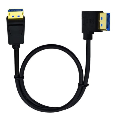 NÖRDIC DPDP-N2011 vinklad videokabel med hög kvalité för att kunna koppla en enhet med Displayport-utgång till en annan enhet 1m svart. Kabeln uppfyller alla krav i Displayport 1.4 standarden.